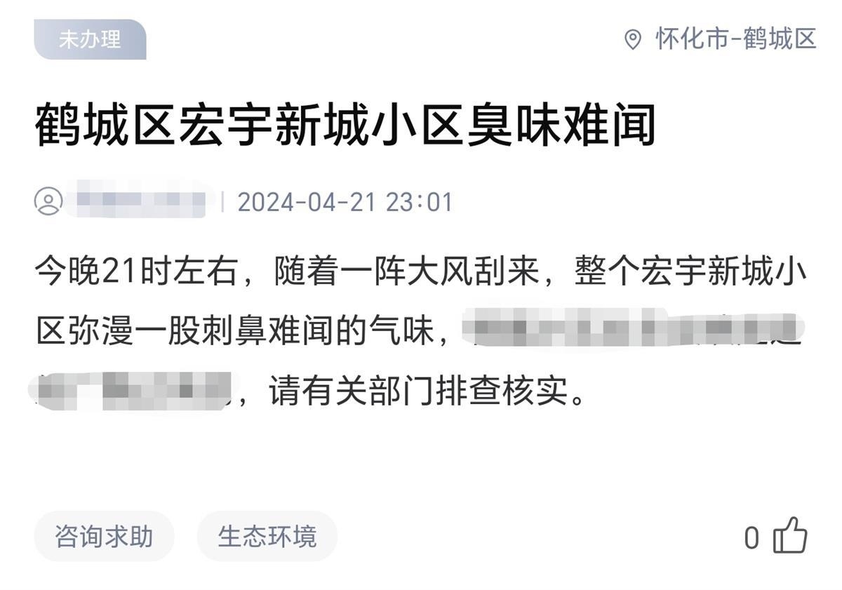 4月21日晚,湖南懷化市鶴城區(qū)多位居民反映聞到不明異味,有人稱像煤氣泄漏,味道刺鼻,有人稱臭味難聞。4月23日,懷化市生態(tài)環(huán)境局工作人員告訴極目新聞記者,已接到較多投訴,正在調查中。