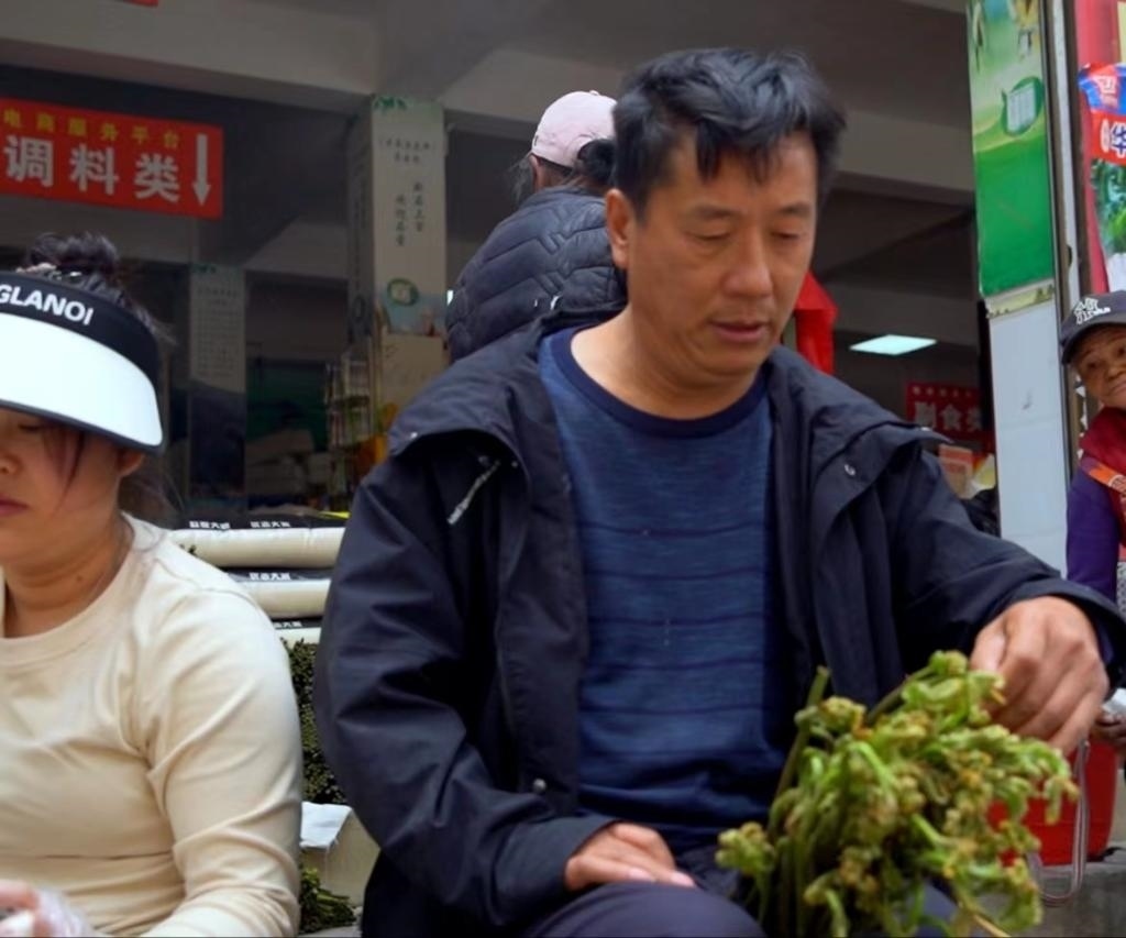 王后國(guó)在查看收購蕨菜的品質(zhì)。新華社發(fā) 阮斌 攝于2024年3月29日