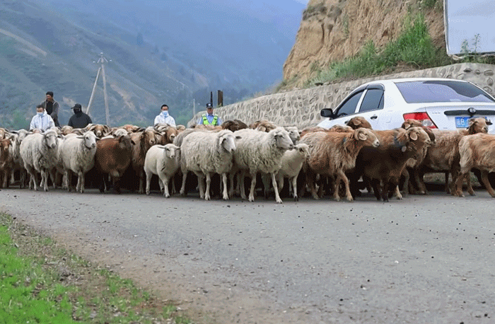 新疆昌吉州吉木薩爾縣地處天山北麓,隨著氣溫回升,當地牧區(qū)的15萬頭牲畜開啟了夏季轉場路。