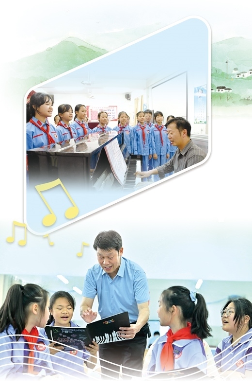 在鐘源興看來(lái),校園合唱團(tuán)要展現(xiàn)學(xué)生青春活潑的個(gè)性特點(diǎn)?!盀榇?,我們將具有當(dāng)?shù)靥厣呐d國(guó)山歌引入合唱,并融入興國(guó)方言作為和聲;根據(jù)學(xué)生年齡特點(diǎn)、演出需要,靈活運(yùn)用道具,變換隊(duì)列造型,并加上舞蹈語(yǔ)匯對(duì)曲目更新編排,讓合唱表演更加立體豐富。”鐘源興說(shuō)。