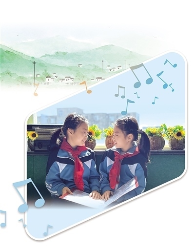 講臺(tái)上,隨著廖光新的雙手向前一打開(kāi),學(xué)生們齊刷刷地唱了起來(lái)?!敖裉焯鞖夂?,去找嘎嘎(外婆)嘍……”稚嫩而清脆的聲音瞬間充滿整個(gè)教室,透過(guò)窗戶傳向遠(yuǎn)處的大山。