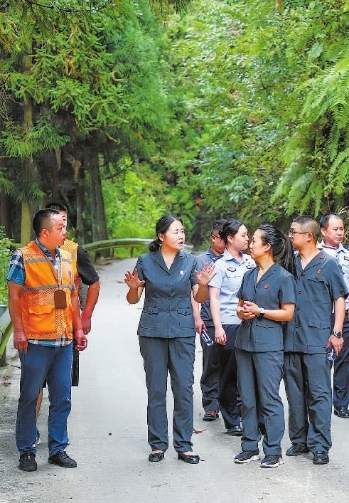 近日,重慶市黔江區(qū)人民法院干警前往黔江區(qū)馬喇國有林場管護站、護林點,對森林防火卡口和護林站點人員值守、消防預(yù)警機制等開展走訪調(diào)查,深入林區(qū)為農(nóng)戶宣講森林防火、森林生態(tài)環(huán)境保護等法律知識,營造全民共護森林的良好氛圍,筑牢武陵山區(qū)生態(tài)屏障。圖為干警在林區(qū)走訪調(diào)查。(本報記者 劉洋 本報通訊員 楊非 攝)