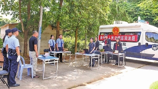 近日,廣東省饒平縣人民法院將巡回法庭開到潮州市生態(tài)司法修復(fù)基地,對一宗污染環(huán)境刑事案件進行公開審理并當(dāng)庭宣判,以被告人劉某龍犯污染環(huán)境罪,判處其有期徒刑一年一個月,緩刑二年,并處罰金人民幣1萬元。法院向被告人發(fā)出生態(tài)修復(fù)補植令。圖為巡回審判現(xiàn)場。(本報記者 吁青 本報通訊員 張蝶 謝鑠 攝)