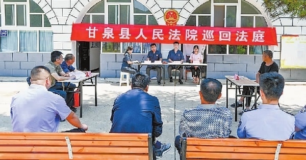 近日,陜西省甘泉縣人民法院道鎮(zhèn)人民法庭在審理一起侵害集體經(jīng)濟組織成員權(quán)益糾紛案件時,考慮到本案為該區(qū)域多發(fā)常見類糾紛,遂將巡回審判庭搬進道鎮(zhèn)五里橋村,在窯洞前就地審理。庭審中,法官充分聽取雙方當(dāng)事人意見,就爭議焦點進行釋法明理。經(jīng)過一個多小時的調(diào)解,雖因雙方訴求差距過大未最終達成調(diào)解協(xié)議,但極大緩和了雙方矛盾。下一步,法官將繼續(xù)就雙方當(dāng)事人的訴求研判方案,組織調(diào)解。庭審結(jié)束后,法官向群眾介紹了本案相關(guān)的法律規(guī)定,就大家關(guān)心的法律問題進行答疑解惑。圖為巡回審判現(xiàn)場。(本報記者 劉輝 本報通訊員 李樂 攝)