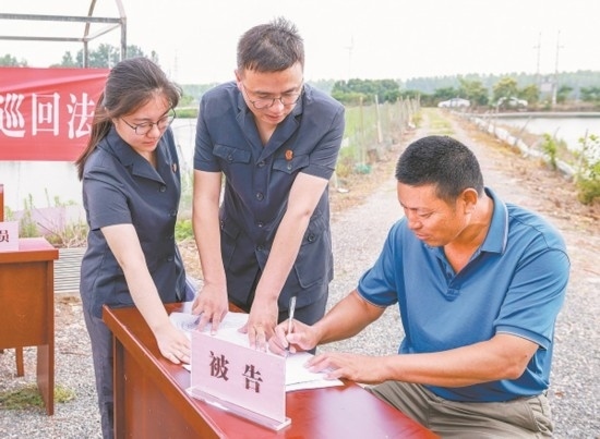 近日,安徽省天長市人民法院秦欄人民法庭法官來到東風(fēng)村螃蟹養(yǎng)殖基地,公開開庭審理一起農(nóng)業(yè)承包合同糾紛案。法官經(jīng)過現(xiàn)場勘查、細心調(diào)解,當(dāng)場化解糾紛,養(yǎng)殖戶投放的500斤蟹苗有了著落,村委會減少了經(jīng)濟損失。