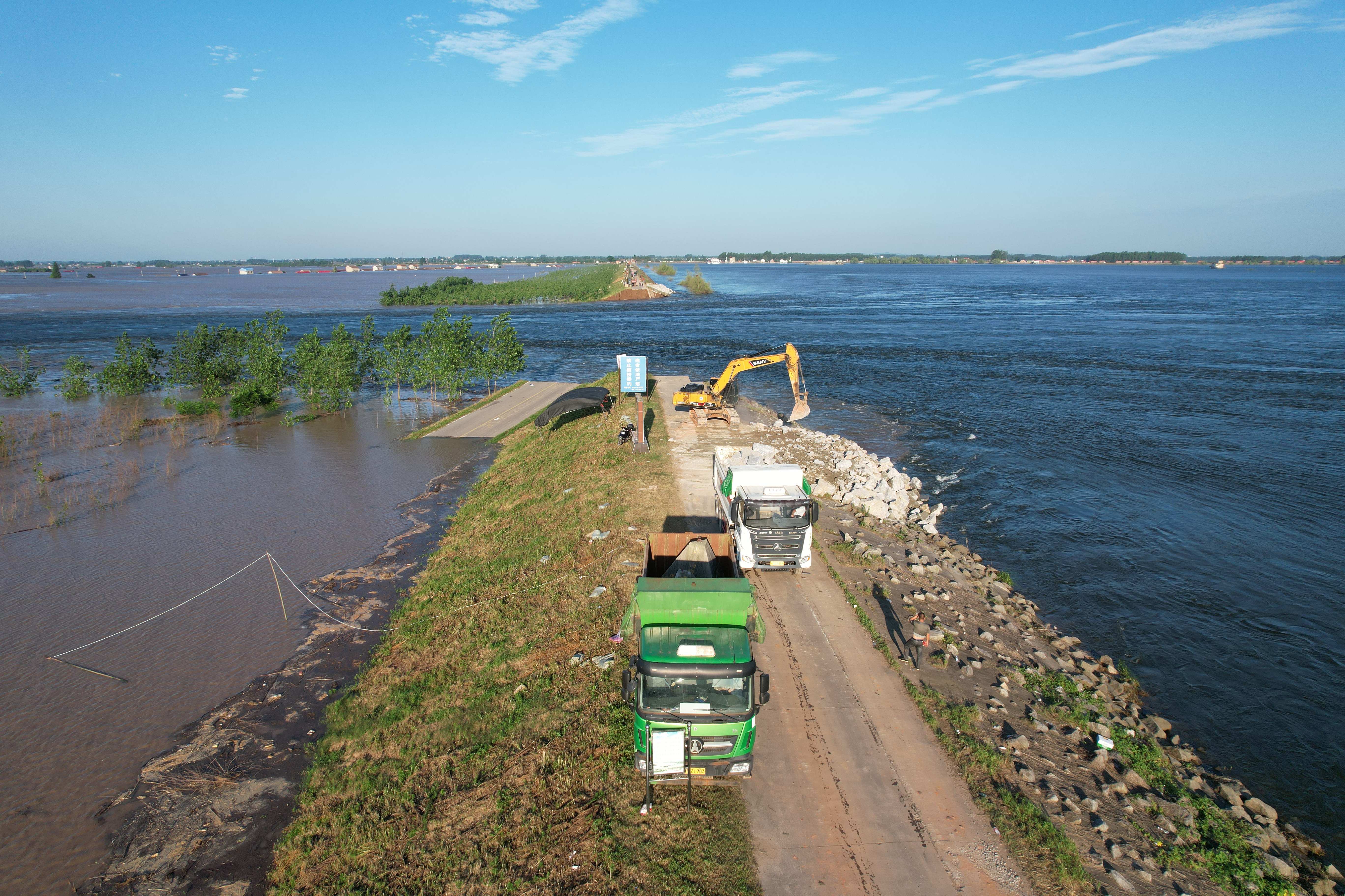 目前,前線正加緊組織工程機械加緊施工,在決口兩端建設4個倒車平臺,并在決口兩端傾倒大型石塊,建設‘裹頭’,減緩水流對決口沖刷,防止決口擴大。
