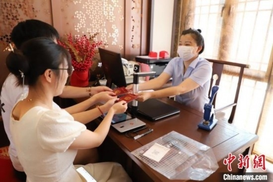 新人在七夕當天領(lǐng)證結(jié)婚。蘇瑤 攝