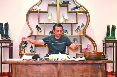 十多年前,26歲的蔡文科拜師學藝。幾年后,同期學藝的人陸續(xù)走了,他卻堅持了下來。吃了些苦頭、費了些心思,蔡文科出師了,還成為內(nèi)聯(lián)升布鞋非遺傳承人。