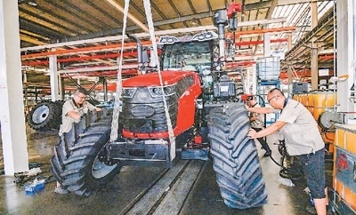 八月二十七日,山東青州經(jīng)濟開發(fā)區(qū)一家大馬力拖拉機制造企業(yè)內(nèi),工人正在車間進行裝配作業(yè)。王繼林?jǐn)z(人民視覺)