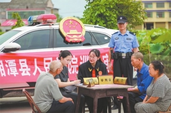 花石法庭與當?shù)厮痉ㄋ?、派出所、律師事?wù)所聯(lián)合村委會就該案開展了分析研判,多次組織雙方當事人協(xié)商,一直未達成協(xié)議。為避免糾紛久拖不決,同時考慮到雙方是幾十年的鄰居,法官決定將庭審“搬”至當事人家門口。