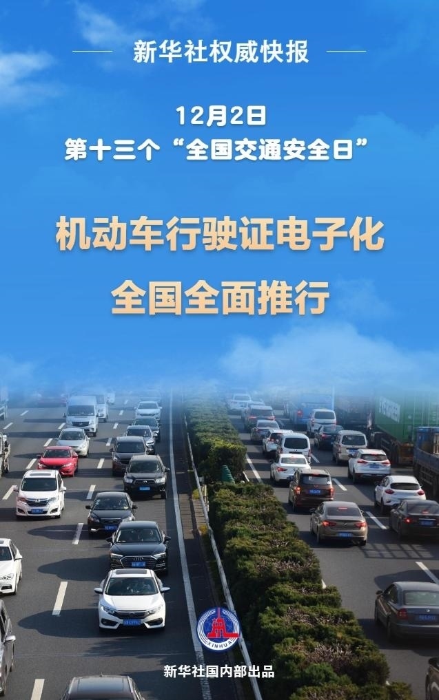 記者1日從公安部獲悉,自今年12月2日起,機動車行駛證電子化在全國全面推行,全國所有車主均可通過“交管12123”APP申領(lǐng)電子行駛證。