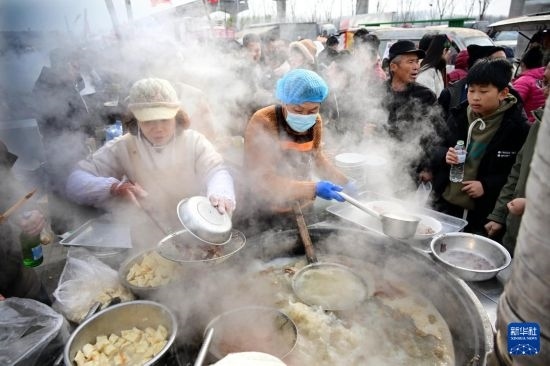 1月18日,泊里大集一個(gè)羊肉湯攤位前排起長(zhǎng)隊(duì)。