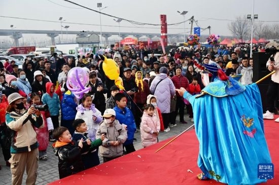 1月18日,人們?cè)诓蠢锎蠹嫌^看表演。