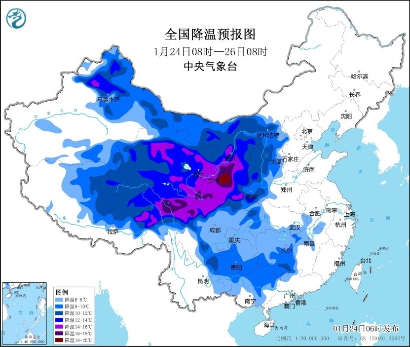 今明兩天,寒潮將主要影響我國(guó)西部地區(qū),新疆北部、西藏中北部、青海、甘肅、寧夏、陜西、山西西部、川西高原北部等地將先后降溫8~10℃,其中,新疆北部、甘肅西部和南部、寧夏大部、陜西南部、川西高原北部等地部分地區(qū)降溫可達(dá)12℃以上 。1月26日至27日,冷空氣繼續(xù)東移南下,華北及其以南大部地區(qū)將有明顯降溫。