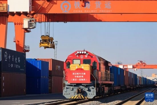 當(dāng)日是農(nóng)歷大年初一,一列滿載110標(biāo)箱紡織品、汽車配件、電子機(jī)械設(shè)備等貨物的中歐班列從南京鐵路物流中心堯化門站貨場啟程,開往俄羅斯莫斯科。這是農(nóng)歷新年南京開出的首趟中歐班列。