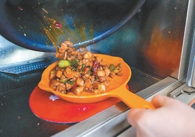 劉楊現(xiàn)場下單了一份干燒雙菇,炒好后,打開柜門的那一刻,香氣撲面而來。“肯定比我自己做的好吃,比一些餐廳的味道也好?!眲钫f:“如果家中來客,炒3個(gè)菜帶回家,總共也就幾十元,比下館子劃算得多?!?/p>