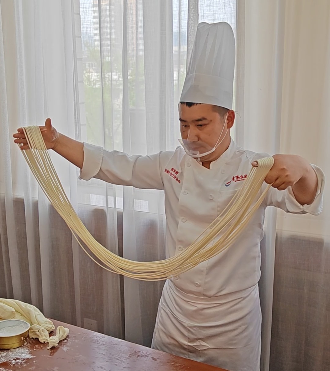 來自青海省本地的拉面師傅還在現(xiàn)場展示了拉面技術(shù)。據(jù)了解,拉面是4000多年來中華民族對美食的探索和傳承的結(jié)晶。2002年,在青海省海東市民和回族土族自治縣的喇家遺址中發(fā)現(xiàn)了距今4000多年前的一根面條,是迄今為止發(fā)現(xiàn)的世界上最古老的面條,被稱作“世界第一面”,也說明中國是面條的發(fā)源地。