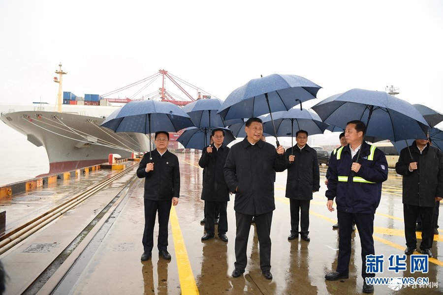 隨后,習近平乘車來到穿山港區(qū)2號集裝箱泊位,冒雨察看了碼頭現(xiàn)場集裝箱作業(yè)場景,了解港口作業(yè)情況。習近平強調(diào),港口是基礎性、樞紐性設施,是經(jīng)濟發(fā)展的重要支撐。寧波舟山港在共建“一帶一路”、長江經(jīng)濟帶發(fā)展、長三角一體化發(fā)展等國家戰(zhàn)略中具有重要地位,是“硬核”力量。要堅持一流標準,把港口建設好、管理好,努力打造世界一流強港,為國家發(fā)展作出更大貢獻。