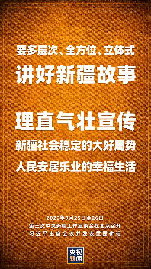 第三次中央新疆工作座談會(huì)9月25日至26日在北京召開。中共中央總書記、國(guó)家主席、中央軍委主席習(xí)近平出席會(huì)議并發(fā)表重要講話。