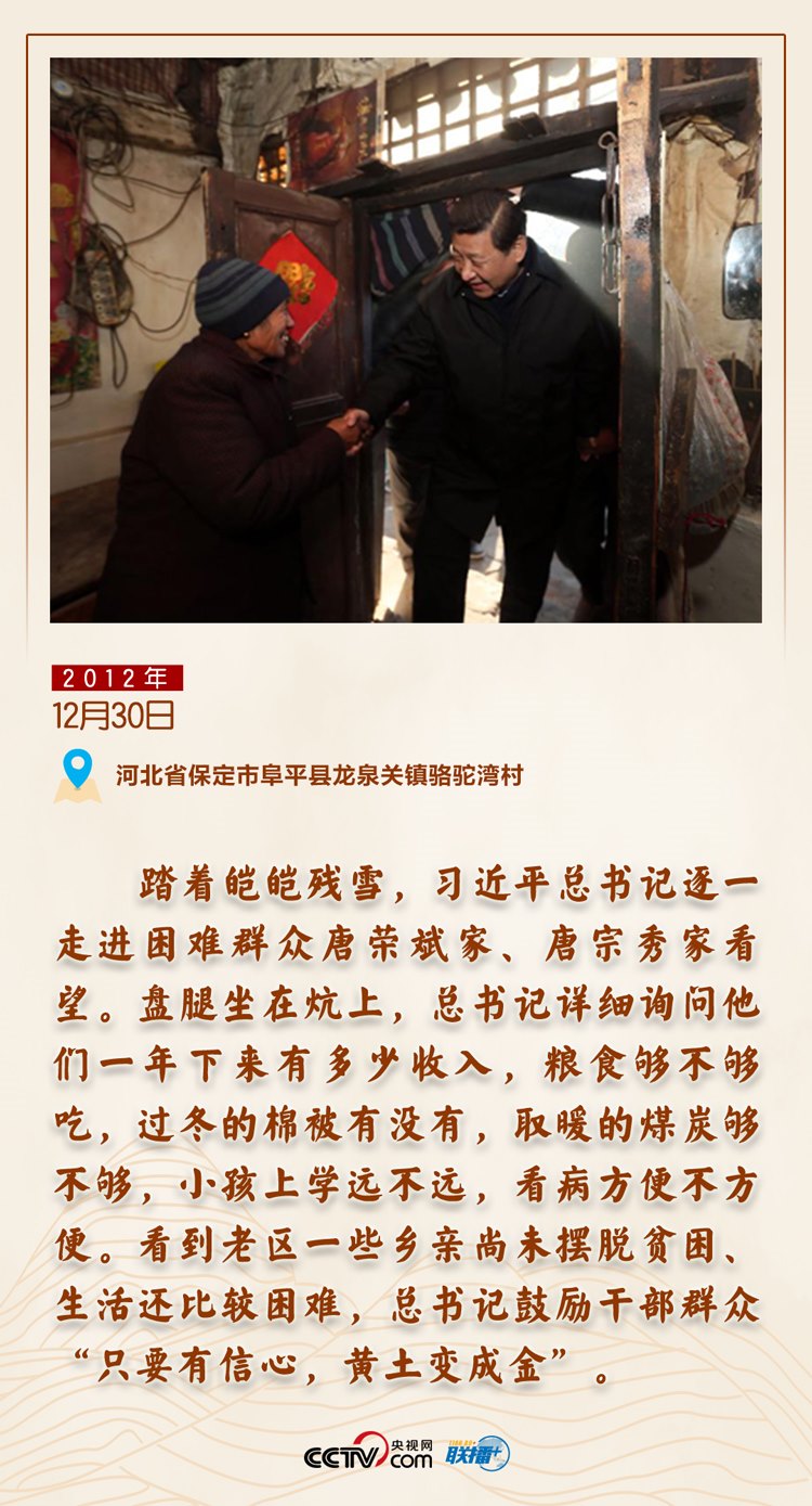 黨的十八大以來(lái),習(xí)近平總書記走遍全國(guó)14個(gè)集中連片特困地區(qū),考察了20多個(gè)貧困村。同老鄉(xiāng)們?cè)谝黄?,總書記?wèn)的是“小事”,算的是細(xì)賬,謀的是出路,想的是實(shí)招,一句句“貼心話”溫暖人心。