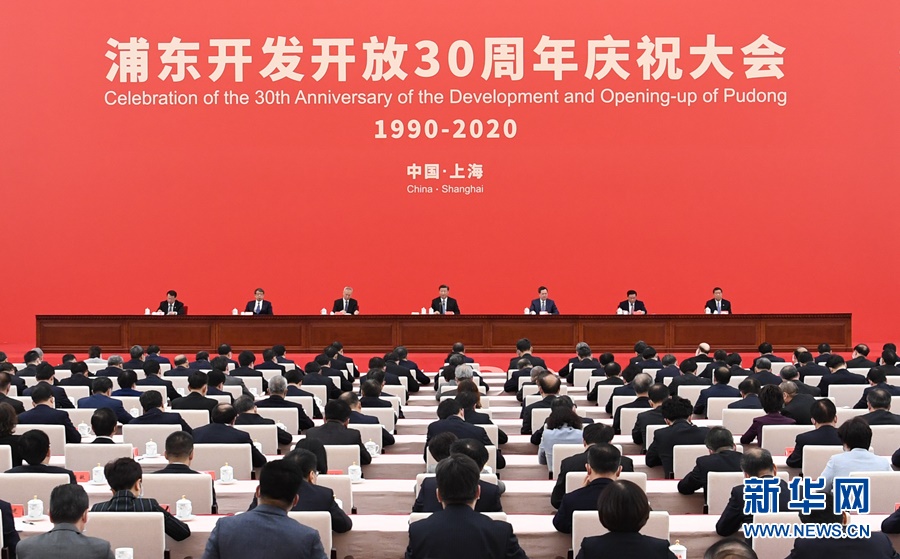 11月12日,浦東開發(fā)開放30周年慶祝大會在上海市舉行。中共中央總書記、國家主席、中央軍委主席習(xí)近平在會上發(fā)表重要講話。新華社記者申宏攝