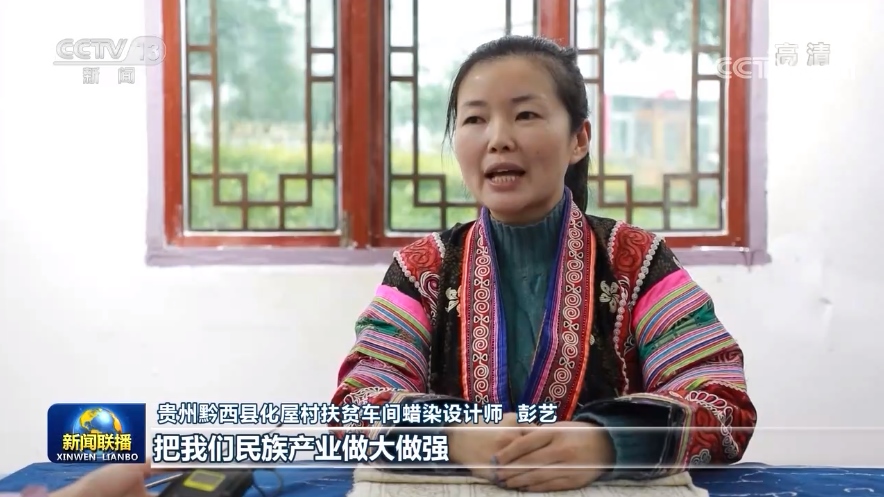 貴州黔西縣化屋村扶貧車間蠟染設(shè)計師彭藝:把我們民族產(chǎn)業(yè)做大做強(qiáng),讓我們苗族同胞的生活,過得像我們蠟染刺繡一樣精彩。