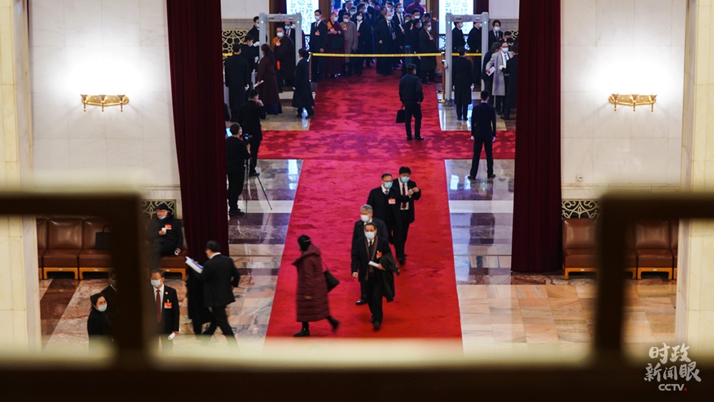 △開(kāi)幕會(huì)結(jié)束后,委員們離開(kāi)會(huì)場(chǎng)。(總臺(tái)央視記者程鋮拍攝)