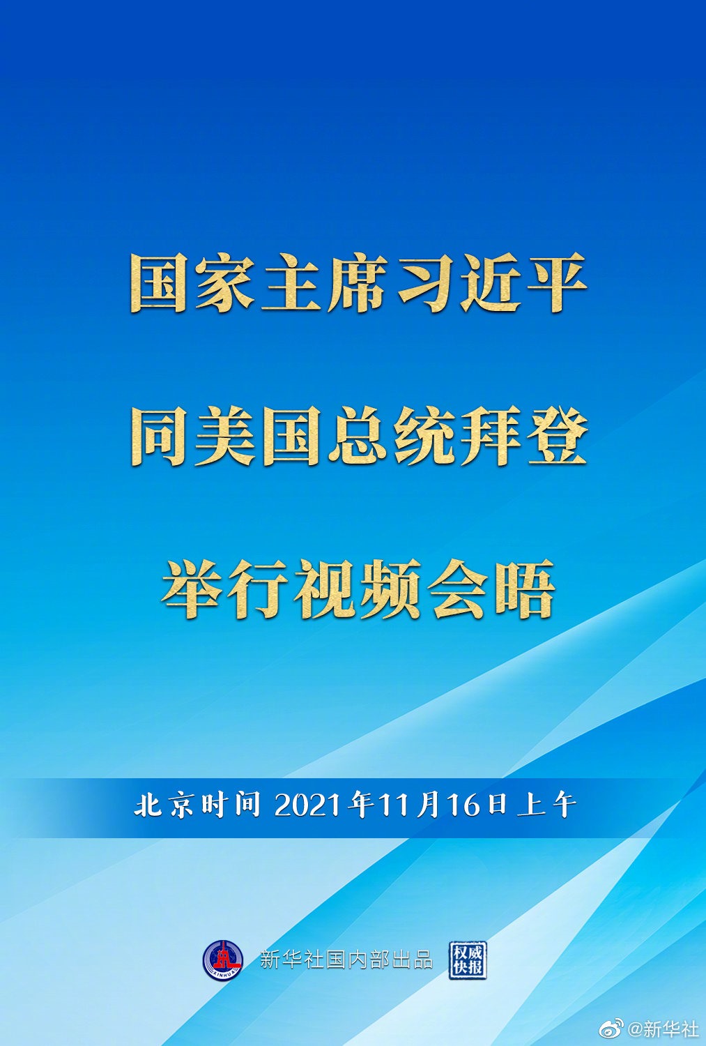經(jīng)中美雙方商定,國家主席習近平于北京時間11月16日上午同美國總統(tǒng)拜登舉行視頻會晤,就中美關(guān)系和雙方共同關(guān)心的問題交換意見?,F(xiàn)在會晤已開始舉行。