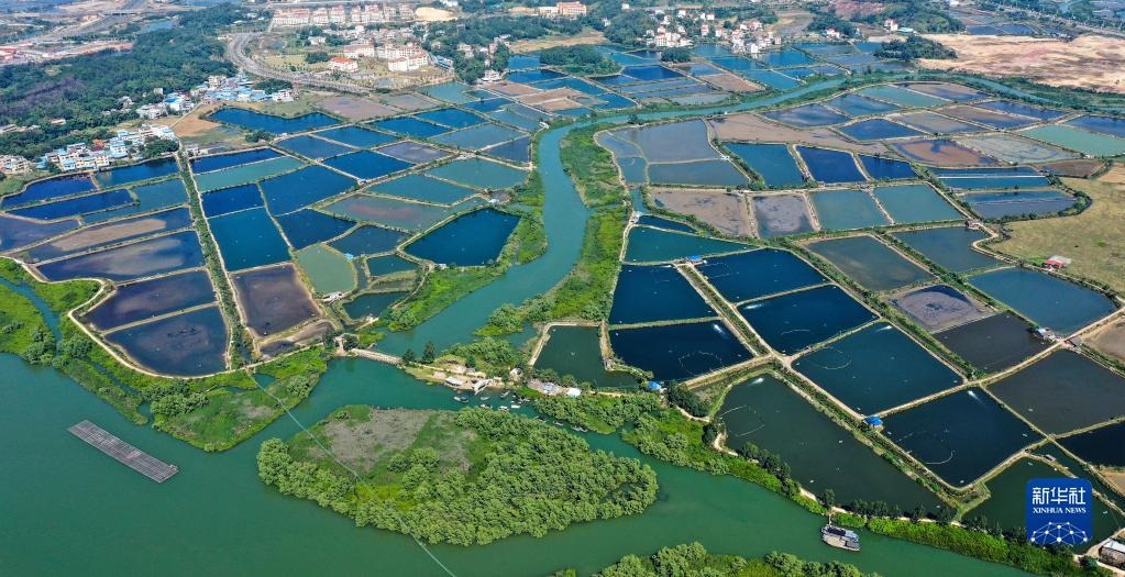 這是廣西欽州市欽南區(qū)沙埠鎮(zhèn)船埠環(huán)村的冬日蝦塘景色(11月25日攝,無(wú)人機(jī)照片)。新華社記者張愛(ài)林?jǐn)z