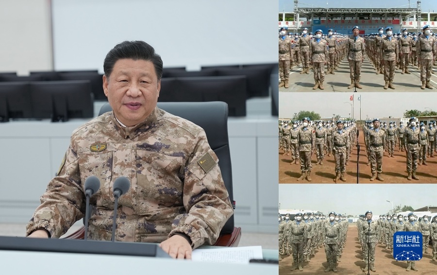 隨后,習近平同中部戰(zhàn)區(qū)海外維和分隊進行視頻通話。來自維和步兵營、工兵分隊、醫(yī)療分隊、直升機分隊的同志們整齊列隊,依次向習近平報告。習近平向他們,并向我軍正在海外執(zhí)行任務(wù)的全體官兵表示慰問。習近平強調(diào),要忠實履行維和使命,為維護世界和平貢獻更多中國力量,向世界展示中國軍隊良好形象。維和任務(wù)區(qū)環(huán)境復(fù)雜,要注意加強安全防范,搞好疫情防控。