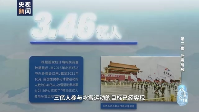 忽如一夜春風(fēng)來,千城萬地雪花開,冰雪運動早已越過山海關(guān),走向全國。中國的冰場和雪館蓬勃發(fā)展,向南,向西,向東,從塞北雪國到江南水鄉(xiāng),從西部邊陲到東部沿海,冰雪之花華麗綻放。根據(jù)《“帶動三億人參與冰雪運動”統(tǒng)計調(diào)查報告》,從2015年北京申冬奧成功到2021年10月間,全國冰雪運動參與人數(shù)達(dá)到3.46億人,“三億人參與冰雪運動”已經(jīng)從愿景變?yōu)楝F(xiàn)實。