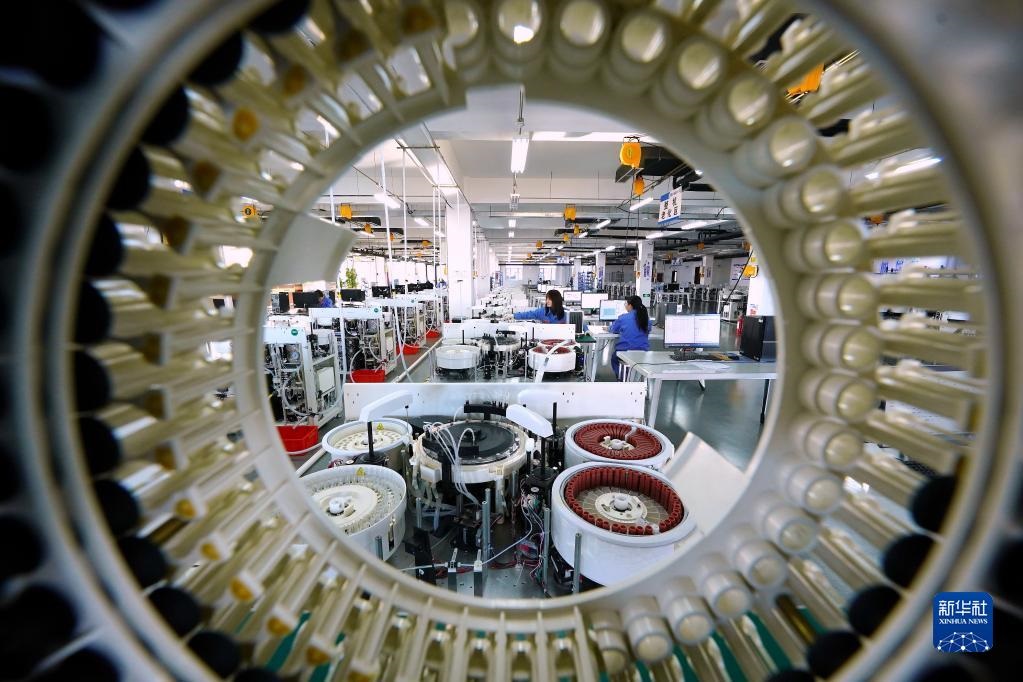 河北省遷安市一家生物科技企業(yè)的員工在生產(chǎn)線上工作(2021年12月26日攝)。 新華社記者 牟宇 攝