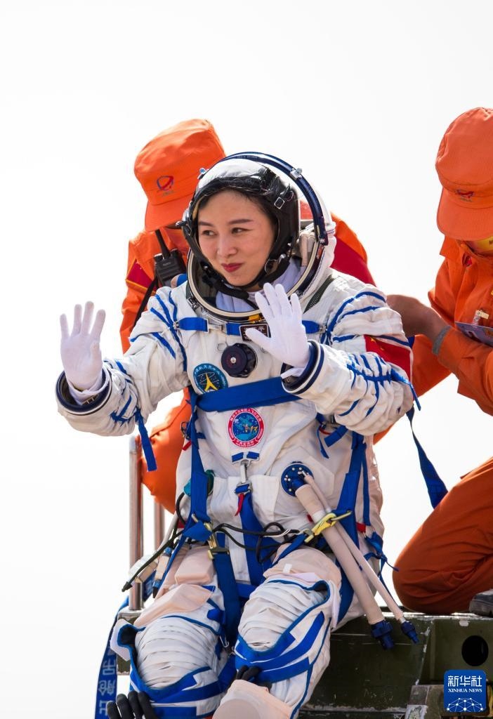 4月16日,神舟十三號(hào)載人飛船返回艙在東風(fēng)著陸場(chǎng)成功著陸。這是航天員王亞平安全順利出艙。新華社記者 連振 攝