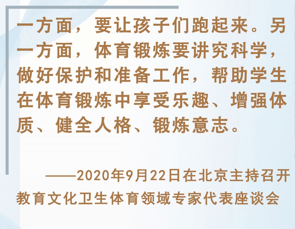 青少年是祖國的未來、民族的希望。強健的體魄是青少年成長成才的重要前提。對加強體育教育,增強青少年體質(zhì),習(xí)近平總書記念茲在茲。