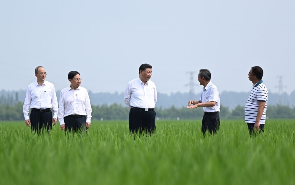 2022年6月8日,習近平在四川眉山市東坡區(qū)太和鎮(zhèn)永豐村高標準水稻種植基地考察,了解水稻試驗育種和種植推廣情況。