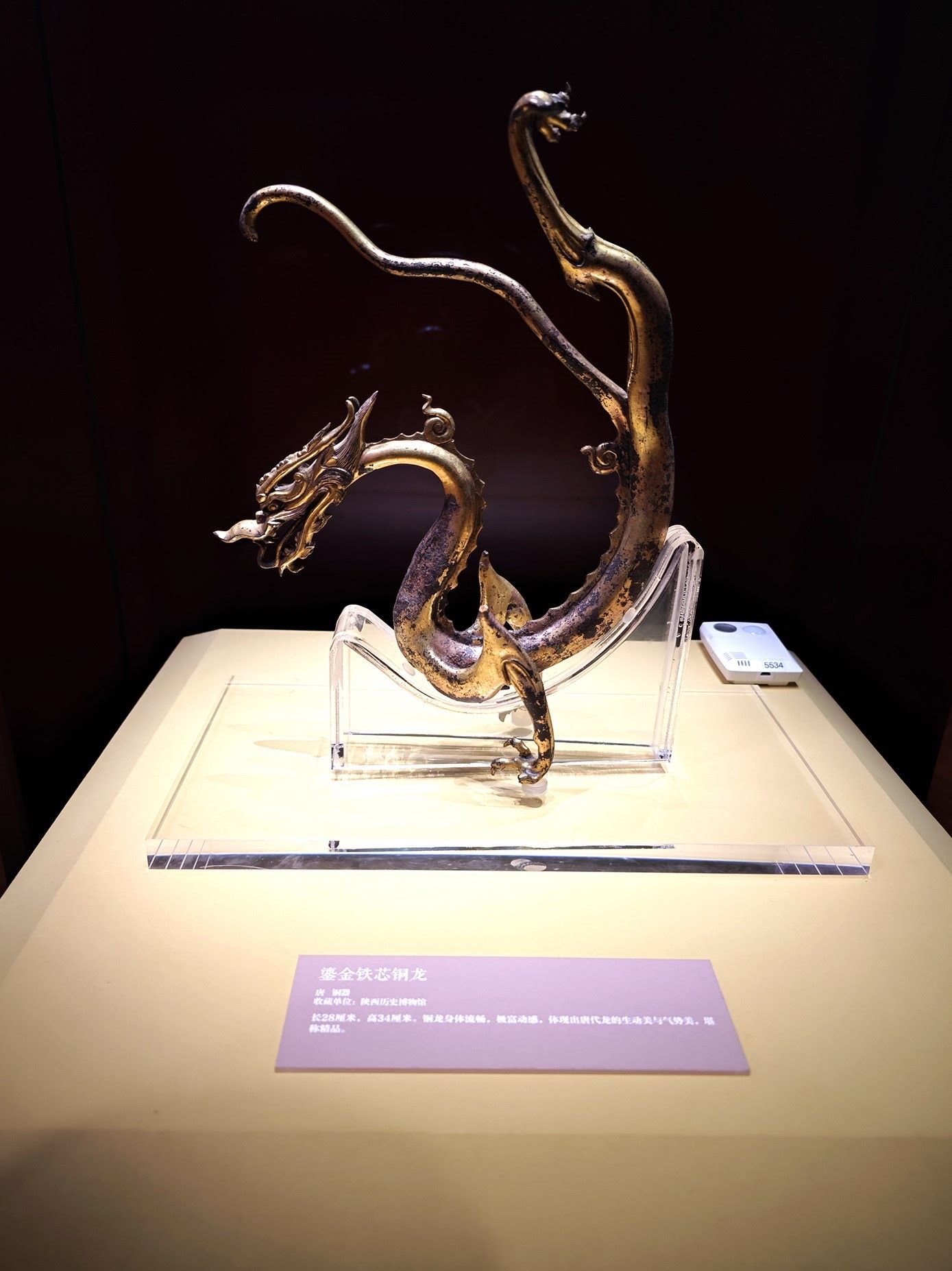 △鎏金鐵芯銅龍,唐朝。(總臺央視記者彭漢明拍攝)