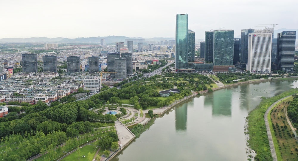義烏國際商貿(mào)城與金融商務區(qū)。