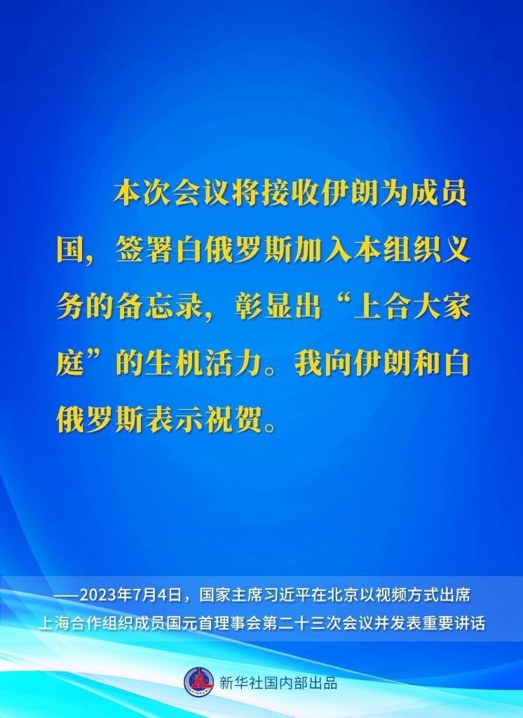 國家主席習近平7月4日下午在北京以視頻方式出席上海合作組織成員國元首理事會第二十三次會議并發(fā)表重要講話。一起來看講話要點。
