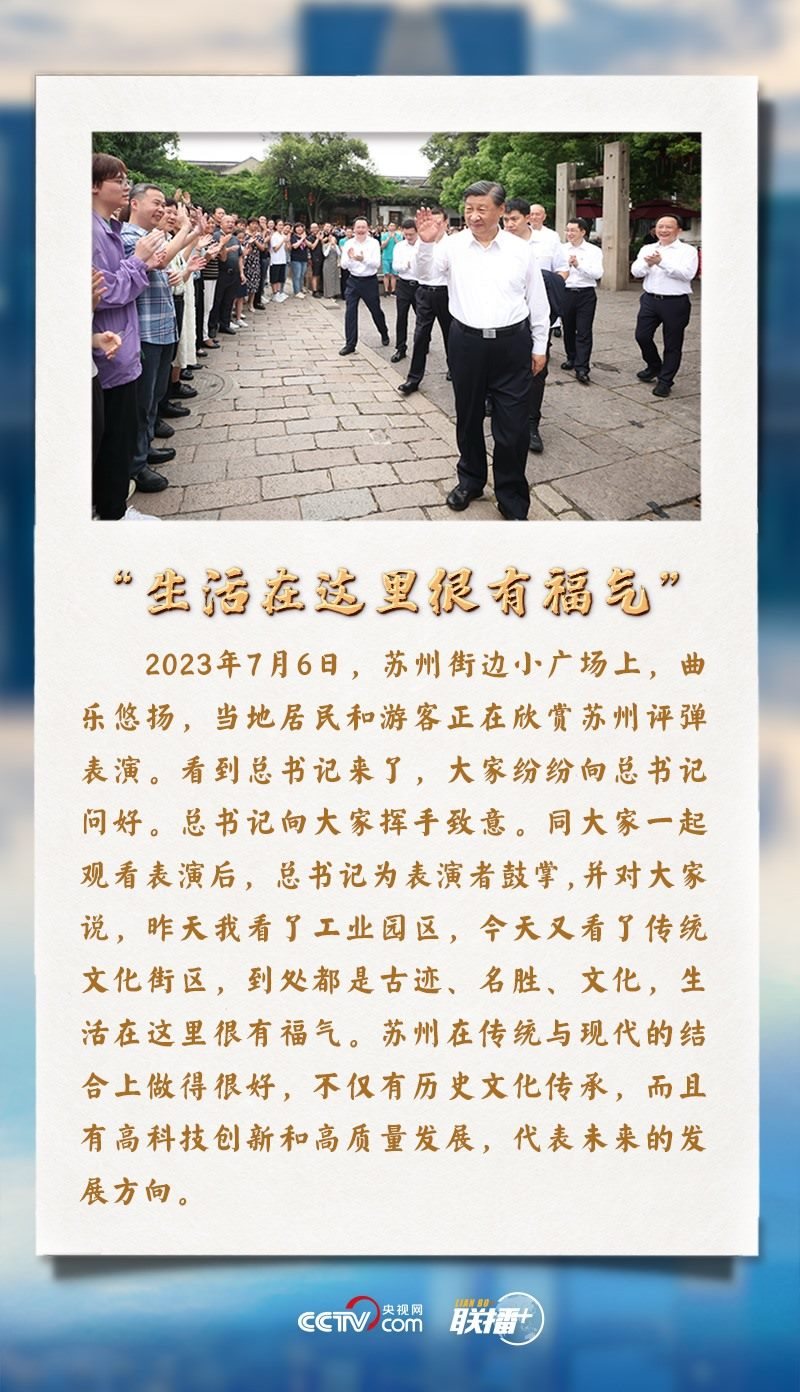 “昨天我看了工業(yè)園區(qū),今天又看了傳統(tǒng)文化街區(qū),到處都是古跡、名勝、文化,生活在這里很有福氣?!?月5日至7日,習(xí)近平總書記先后來到蘇州、南京等地考察調(diào)研。