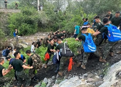 8月5日夜間,搶險人員完成北京房山15公里的軍紅路道路搶修疏通任務(wù),為大安山鄉(xiāng)及周邊1萬余名群眾打通了“生命通道”。
