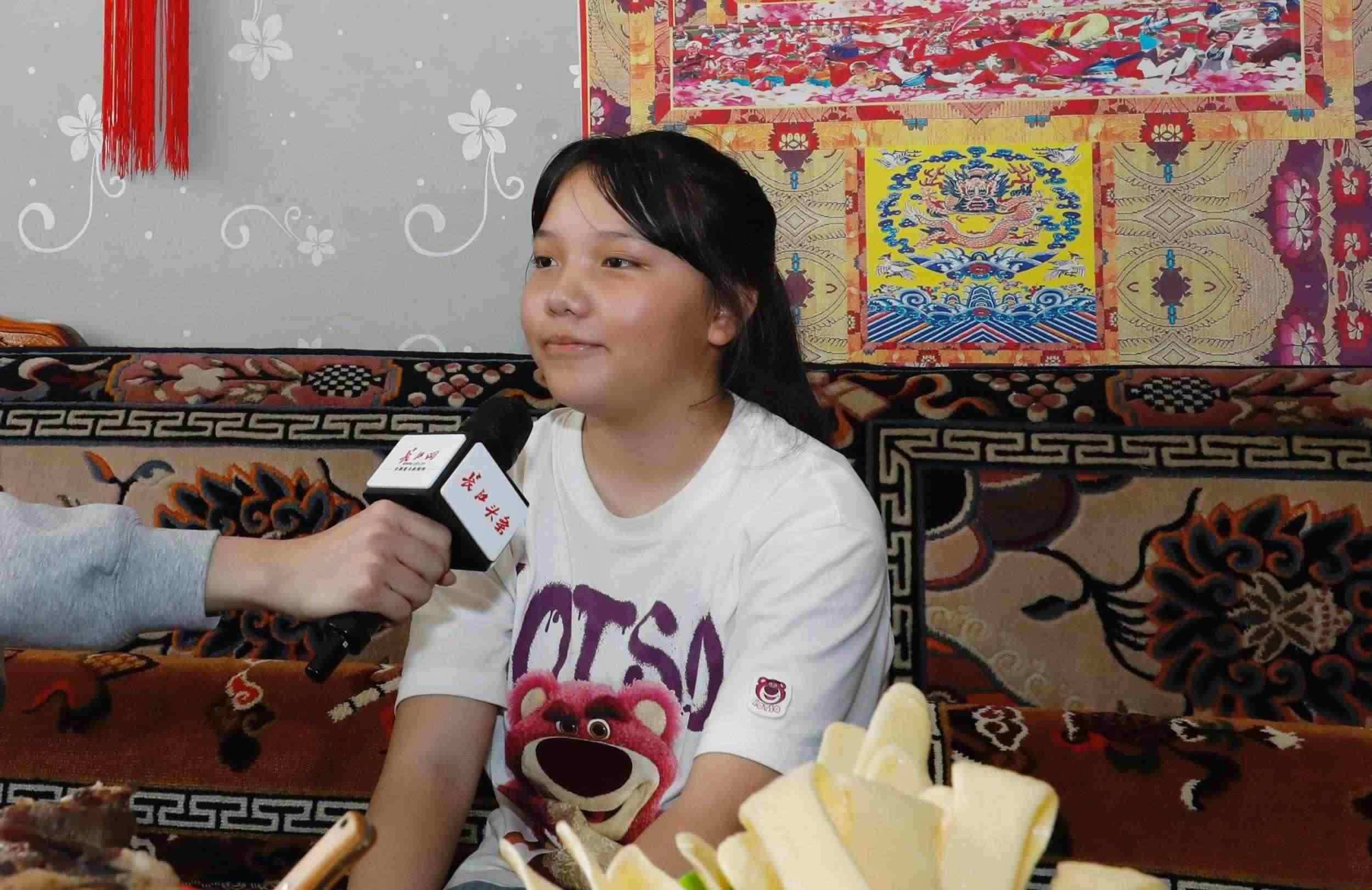 2023年7月22日,在青海省海西蒙古族藏族自治州格爾木市唐古拉山鎮(zhèn)長江源村的家里,12歲的藏族女孩次央拉姆熱情地說道。長江日報記者看到,次央拉姆家中墻上掛著習近平總書記擁抱她的照片。