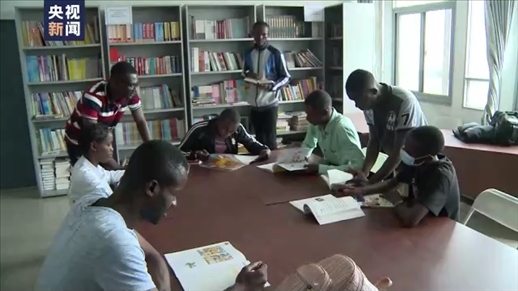 △漢語(yǔ)愛(ài)好者在恩古瓦比大學(xué)圖書館中國(guó)館里學(xué)習(xí)。