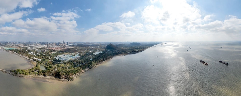這是2020年11月13日拍攝的江蘇省南通市五山及沿江地區(qū)景色(無人機全景照片)。新華社記者 季春鵬 攝