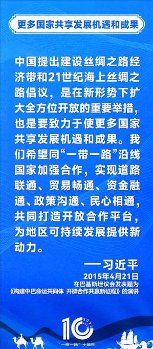 10年前,習(xí)近平主席提出共建“絲綢之路經(jīng)濟帶”和“21世紀海上絲綢之路”,即共建“一帶一路”倡議。過去10年來,習(xí)近平主席在多個場合發(fā)表講話和署名文章,為世界描繪了共建“一帶一路”互聯(lián)互通、合作共贏的宏偉藍圖。
