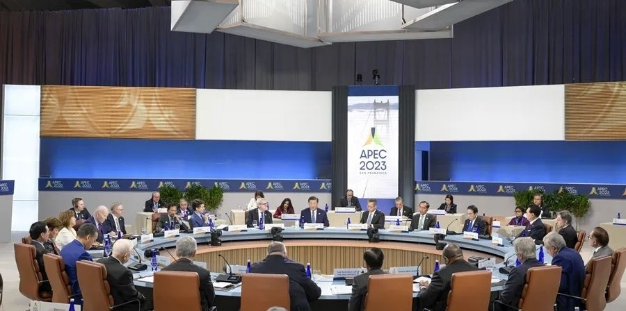 當(dāng)?shù)貢r(shí)間11月17日上午,亞太經(jīng)合組織第三十次領(lǐng)導(dǎo)人非正式會議在美國舊金山莫斯科尼中心舉行。國家主席習(xí)近平出席會議并發(fā)表題為《堅(jiān)守初心 團(tuán)結(jié)合作 攜手共促亞太高質(zhì)量增長》的重要講話。新華社記者 李學(xué)仁 攝