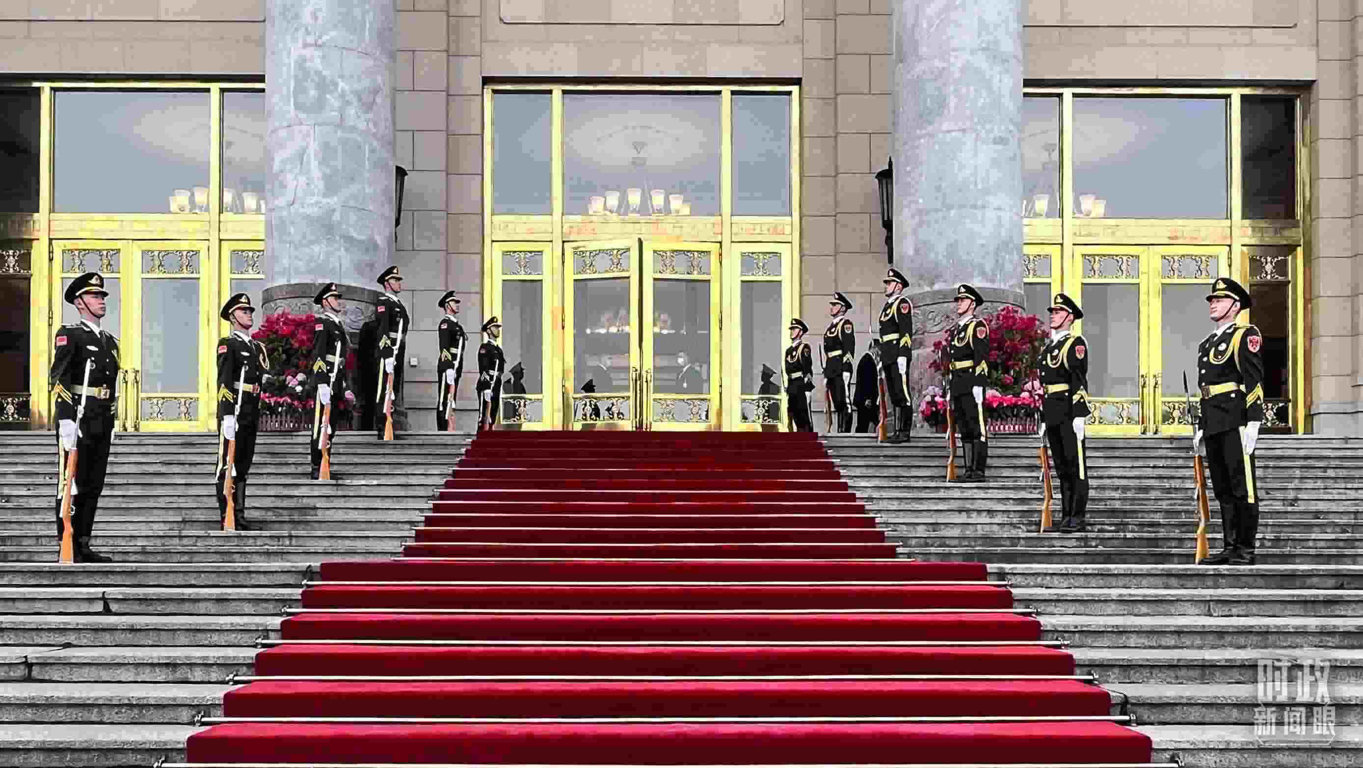 △ 2023年10月17日至20日,習近平主席在北京人民大會堂密集會見了26位外方領(lǐng)導(dǎo)人。圖為禮兵列隊迎接貴賓。(總臺央視記者張垚拍攝)