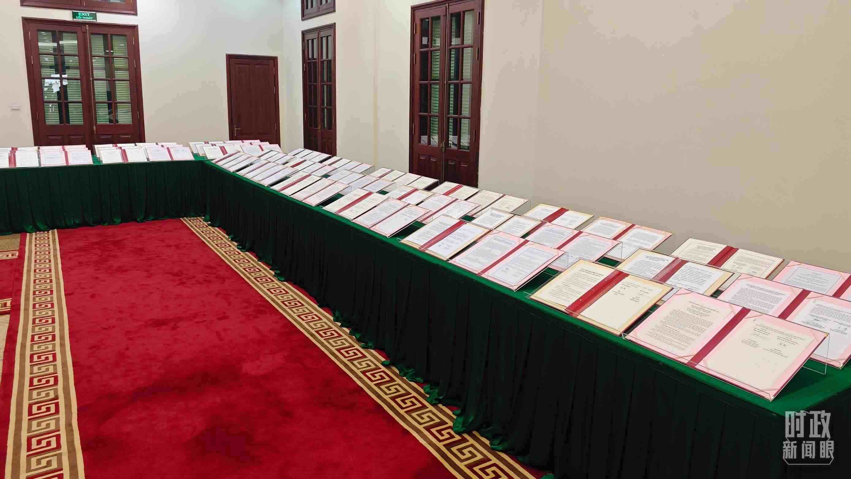 △ 2023年12月,習近平主席抵達越南河內(nèi),開啟年內(nèi)的第四次出訪。圖為中越雙方簽署的雙邊合作文件展示,涵蓋共建“一帶一路”等30多個領(lǐng)域。(總臺央視記者耿小龍拍攝)