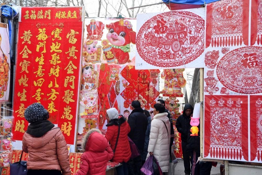 2019年2月1日,市民在天津古文化街選購(gòu)新年飾品。