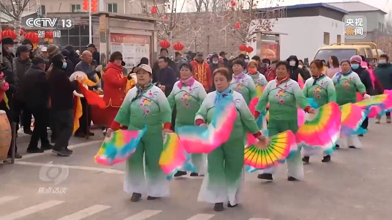 敲鑼打鼓扭秧歌,村民們自發(fā)組成的文藝隊(duì)雖然并不專(zhuān)業(yè),但鄉(xiāng)親們的臉上都洋溢著燦爛的笑容。