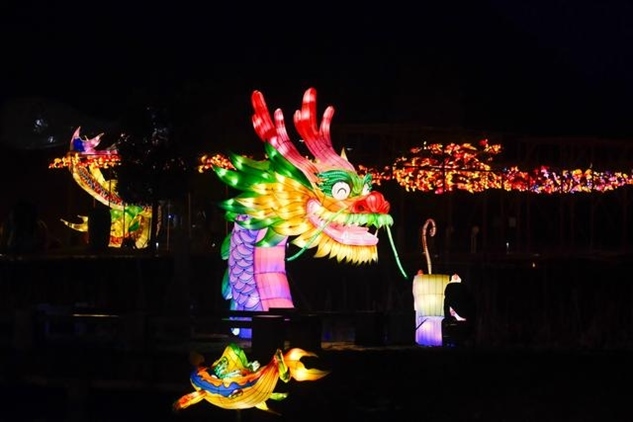 自小年夜開(kāi)始,浙江安吉余村2024新年燈會(huì)就開(kāi)始亮燈,9組11個(gè)原創(chuàng)龍燈璀璨亮相。